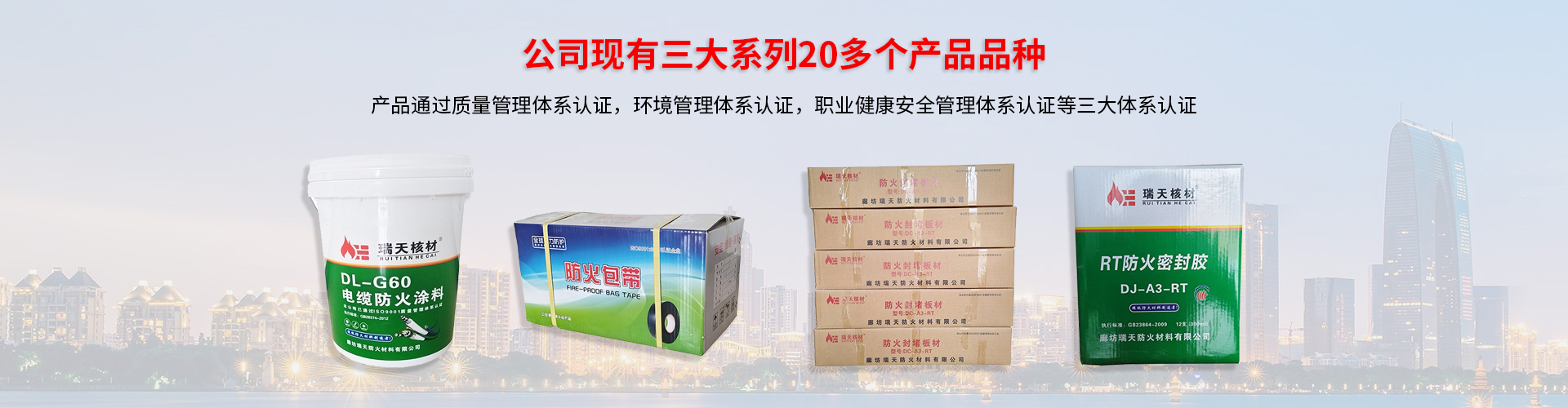 廊坊瑞天防火材料有限公司。是一家從事防火阻燃材料的生產與研發為一體的科技型企業。工廠位于河北廊坊,技術先進,實力雄厚,擁有核級防火材料的生產能力。公司現有三大系列20多個產品品種,其中包括電纜防火涂料、防火封堵板材A3(防火涂層板)、防火密封膠、無機堵料、柔性有機堵料、阻火包、阻火包帶、阻火模塊、室內膨脹型鋼結構防火涂料、室內非膨脹型鋼結構防火涂料等。廣泛應用于核電站、鋼結構、建筑、石化、船舶、機械制造、航天、鋼鐵等。產品暢銷全國,并出口東···